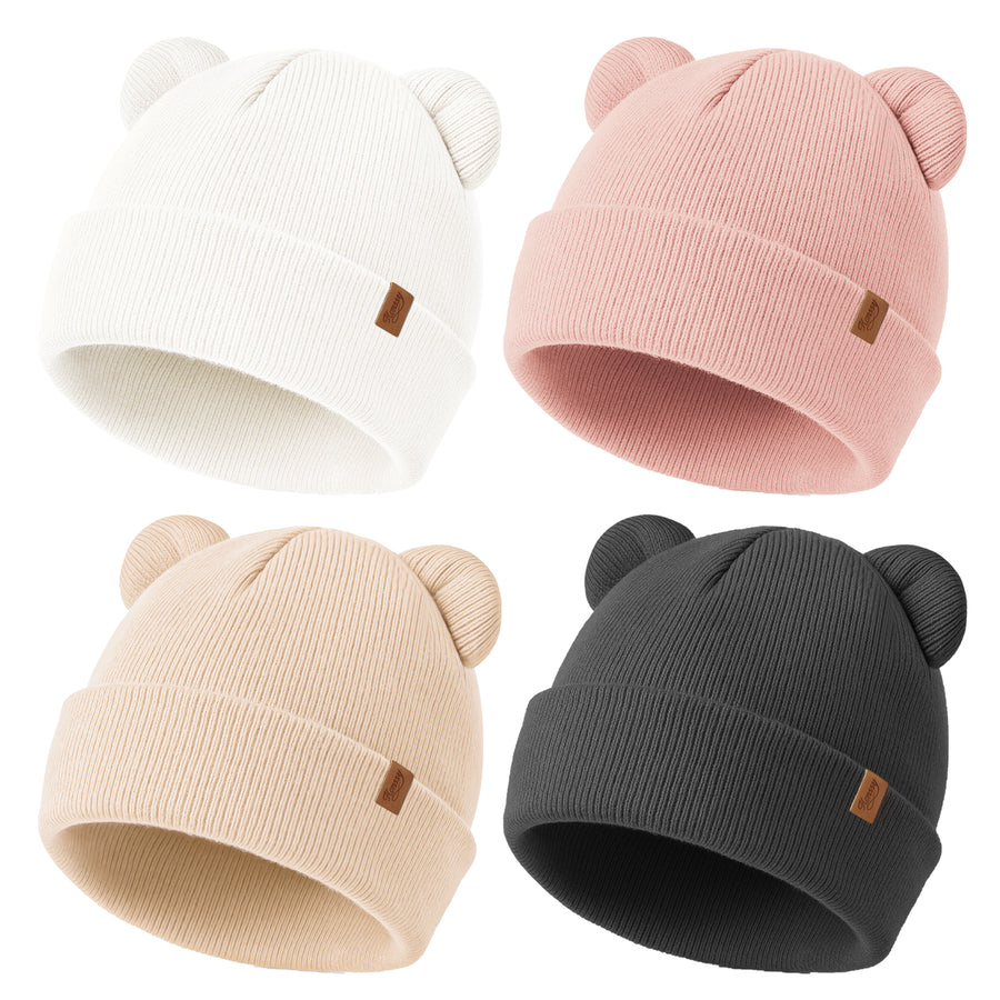 Konssy 4 Pack Baby Winter Hat with Bear Ears, Warm Rib Baby Knit Beanie for Newborns & Infants, Cozy Hat 0–6 Months
