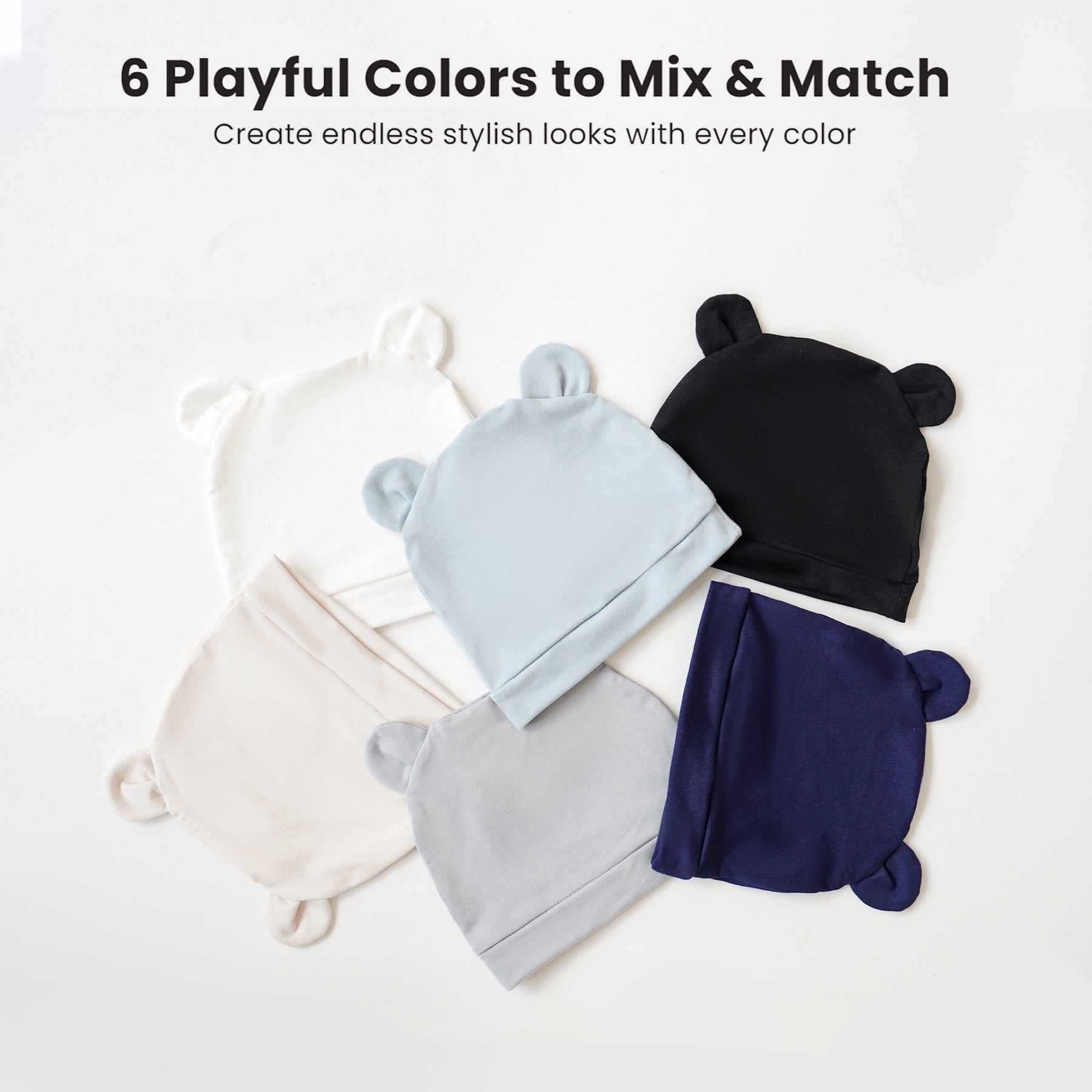 - Cute Bear Ear Baby Hats: This baby newborn hat features 2 adorable bear ears and comes in a set of 6 hats with different colors to choose from. These hats fit comfortably on your baby's head, staying securely in place. The breathable material keeps your little one comfortable all day long