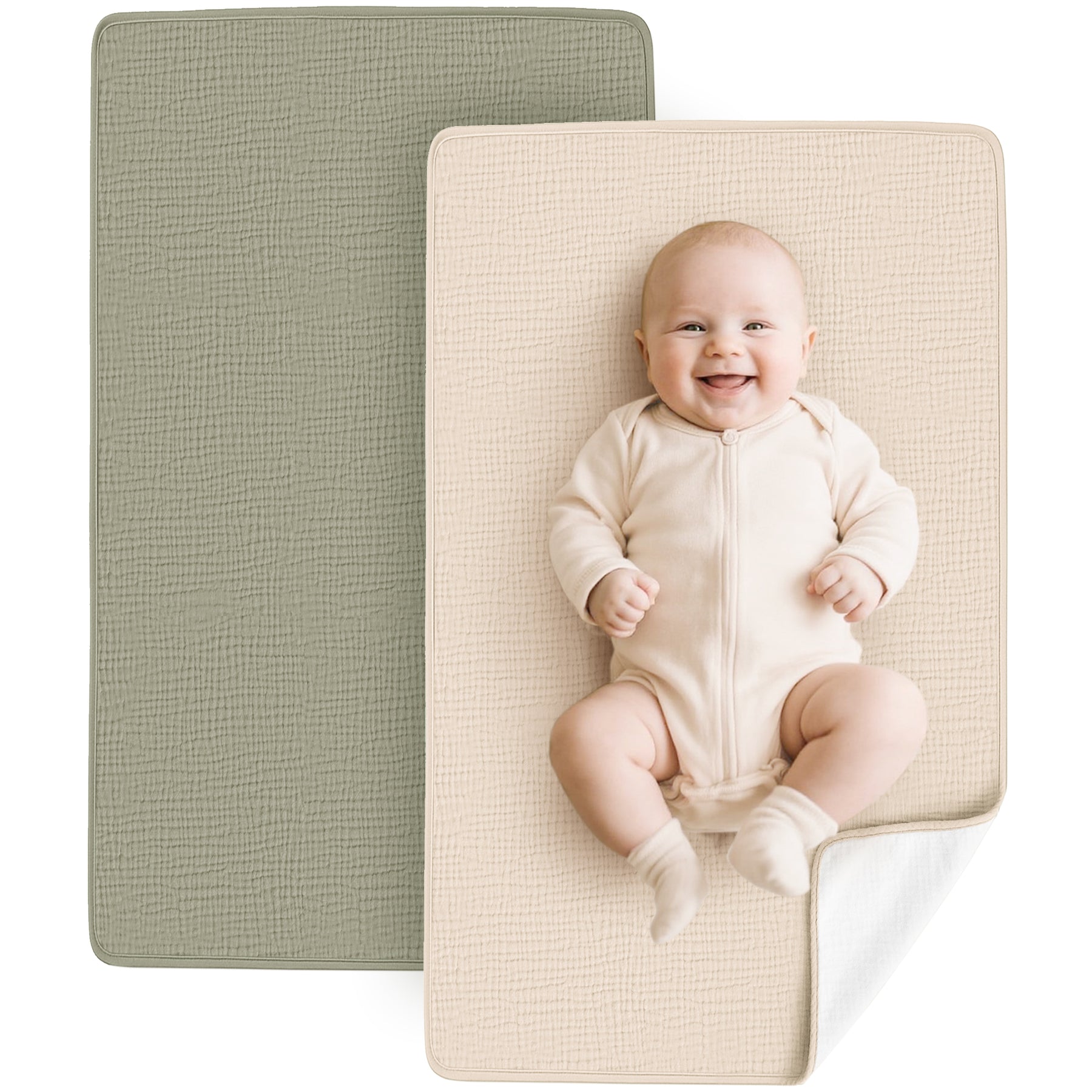 Konssy 2 Pack Waterproof Muslin Cotton Portable Changing Pad 30"x 17"