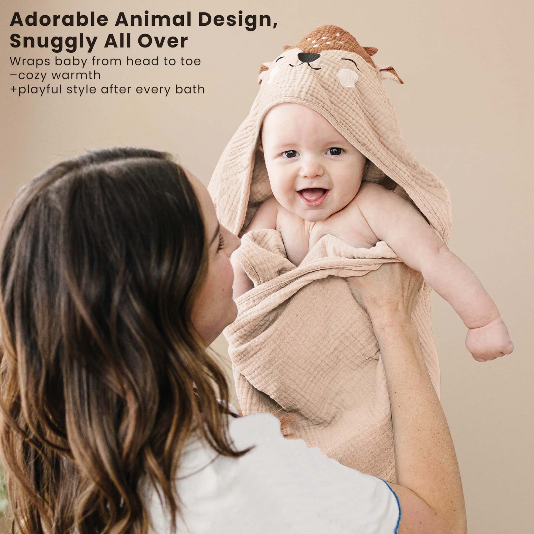 - Soft & Breathable Material: Made of 100% cotton muslin, these baby towels are gentle on baby's skin and get softer with every wash. Lightweight and absorbent for bath, pool, or beach. Ideal for newborns, infants, and toddlers