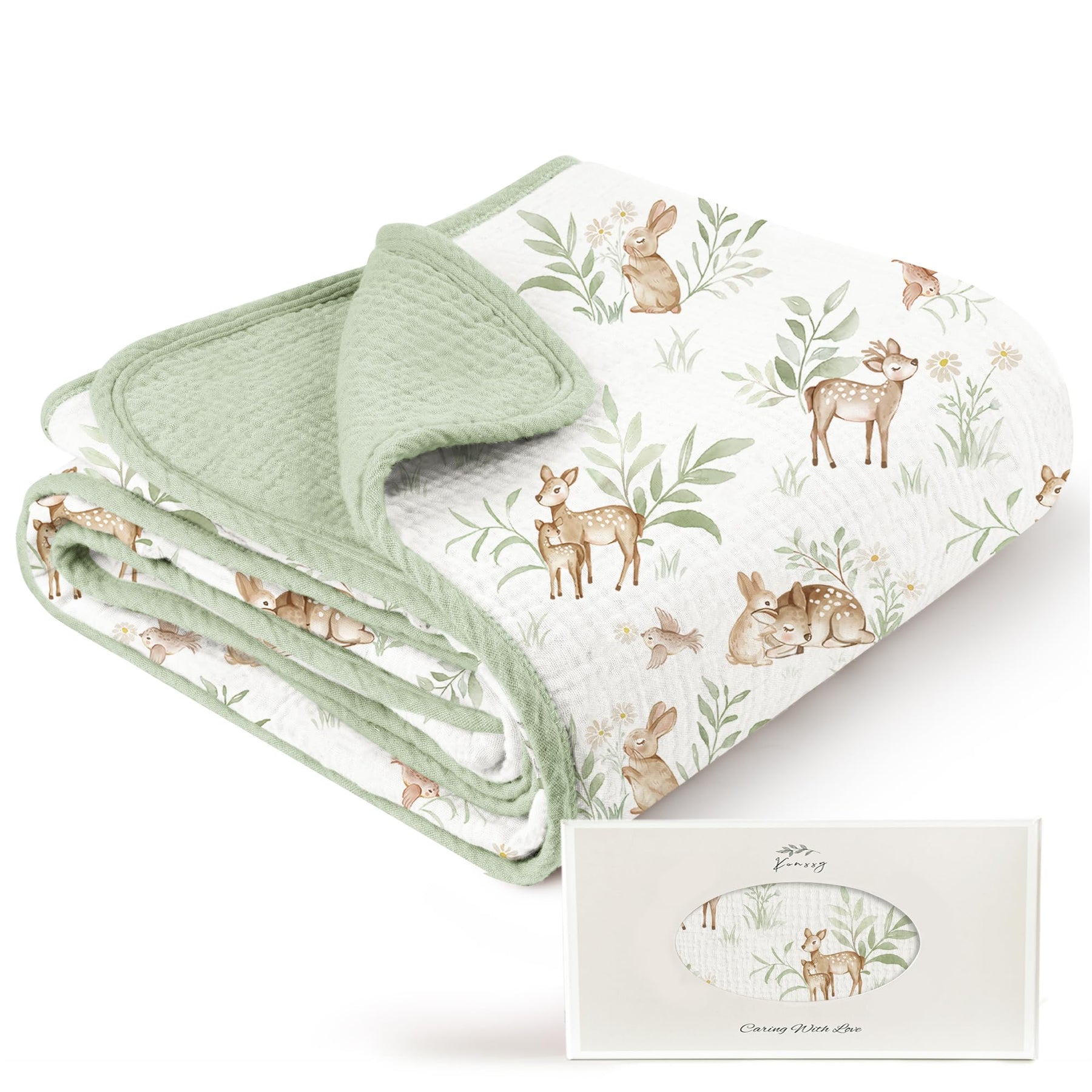 - 【Stylish Designs】- Adorable patterns, our muslin baby blanket adds a touch of charm to your little one's nursery or bedroom decor. The blanket can be used as baby bed blanket, swaddling blanket, throw blankets, stroller blanket, crib blanket or A gift for baby shower.