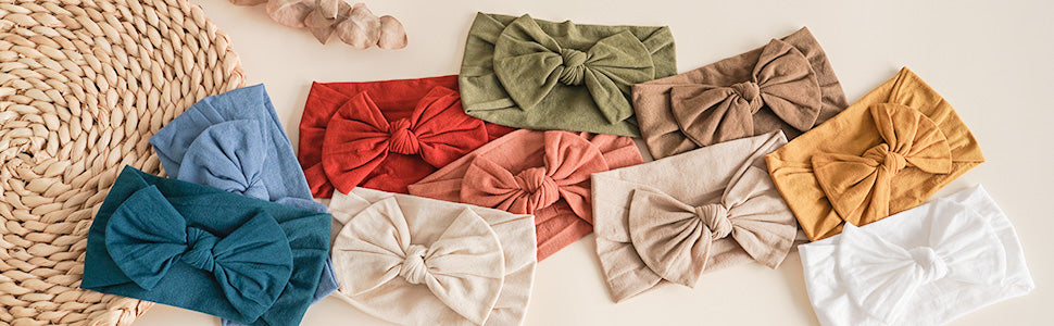 Our Bows are all handcrafted in a smoke-free and pet-free environment. With Quality in mind, each of our baby headbands are created by our professional designers and handmade by our skilled workers. As an experienced manufacturer over 10 years, the Bow Material we use are all new ones with Grade A quality. There are four QC steps before leave factory.