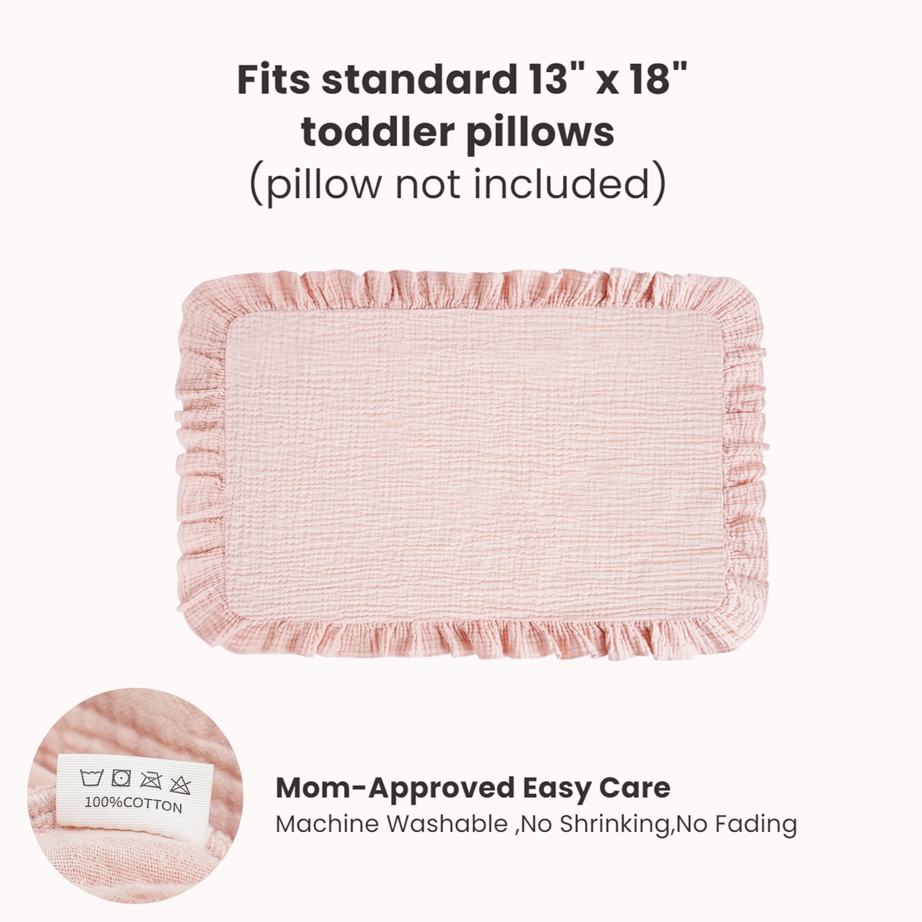 - Elegant Flounce Design: The Konssy Flounce Muslin Toddler Pillowcase features a charming flounce trim that adds a stylish touch to your child's bed. This cute toddler pillowcase makes bedtime extra special, perfect for both home and travel