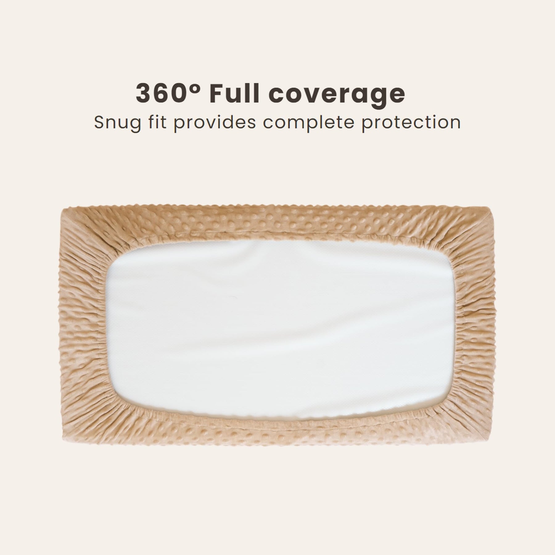 - Snug Fit: This changing pad cover is designed with fully encased-360 Degree elastic, ensuring a snug and secure fit around the changing pad. This prevents the changing pad cover from slipping or moving around during diaper changes, providing a stable surface for your baby