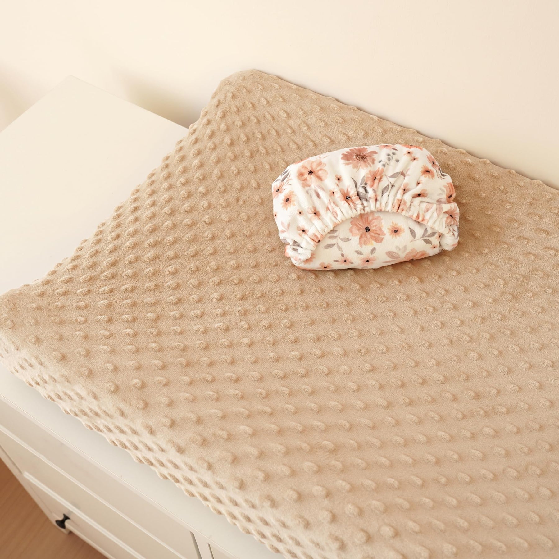 - Soft Minky Fabric: Our changing pad cover is made from soft and gentle minky fabric, providing a comfortable surface for your baby's diaper changes. One features minky dot fabric for texture, while the other is smooth, providing different tactile options
