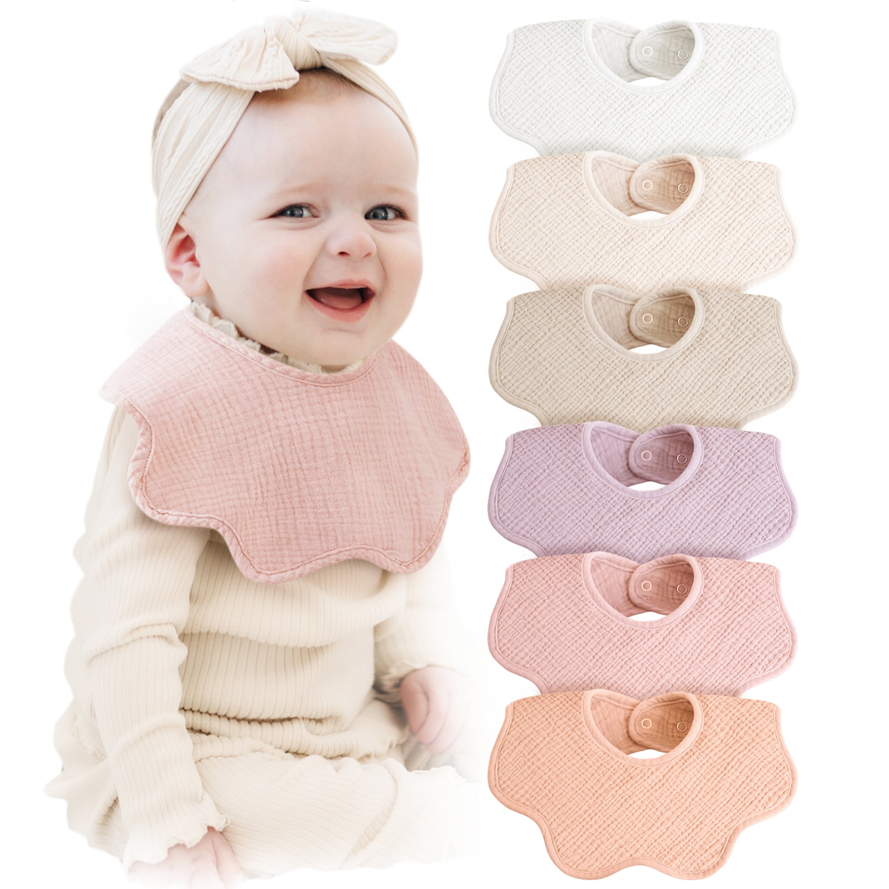 - Soft & Absorbent: These baby bibs are crafted from 100% cotton muslin, providing excellent absorbency and a soft, gentle touch. They quickly absorb drool and spills, keeping both you and your baby clean and dry all day long