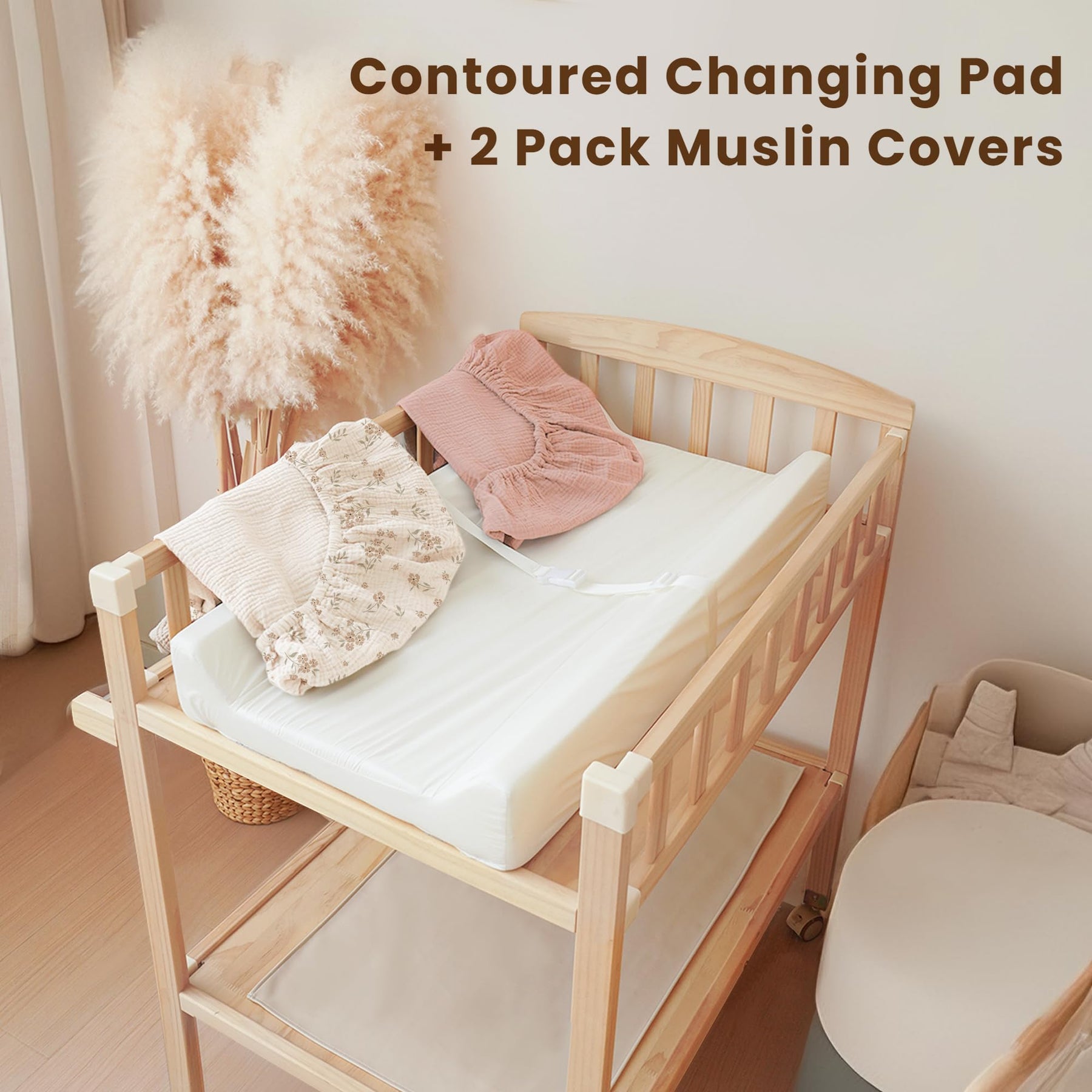 - 2 Pack Muslin Changing Pad Covers: This changing pad set includes two soft, machine-washable muslin covers. The extra cover ensures you always have a fresh, clean surface for your baby, even between washes, making diaper changes more convenient